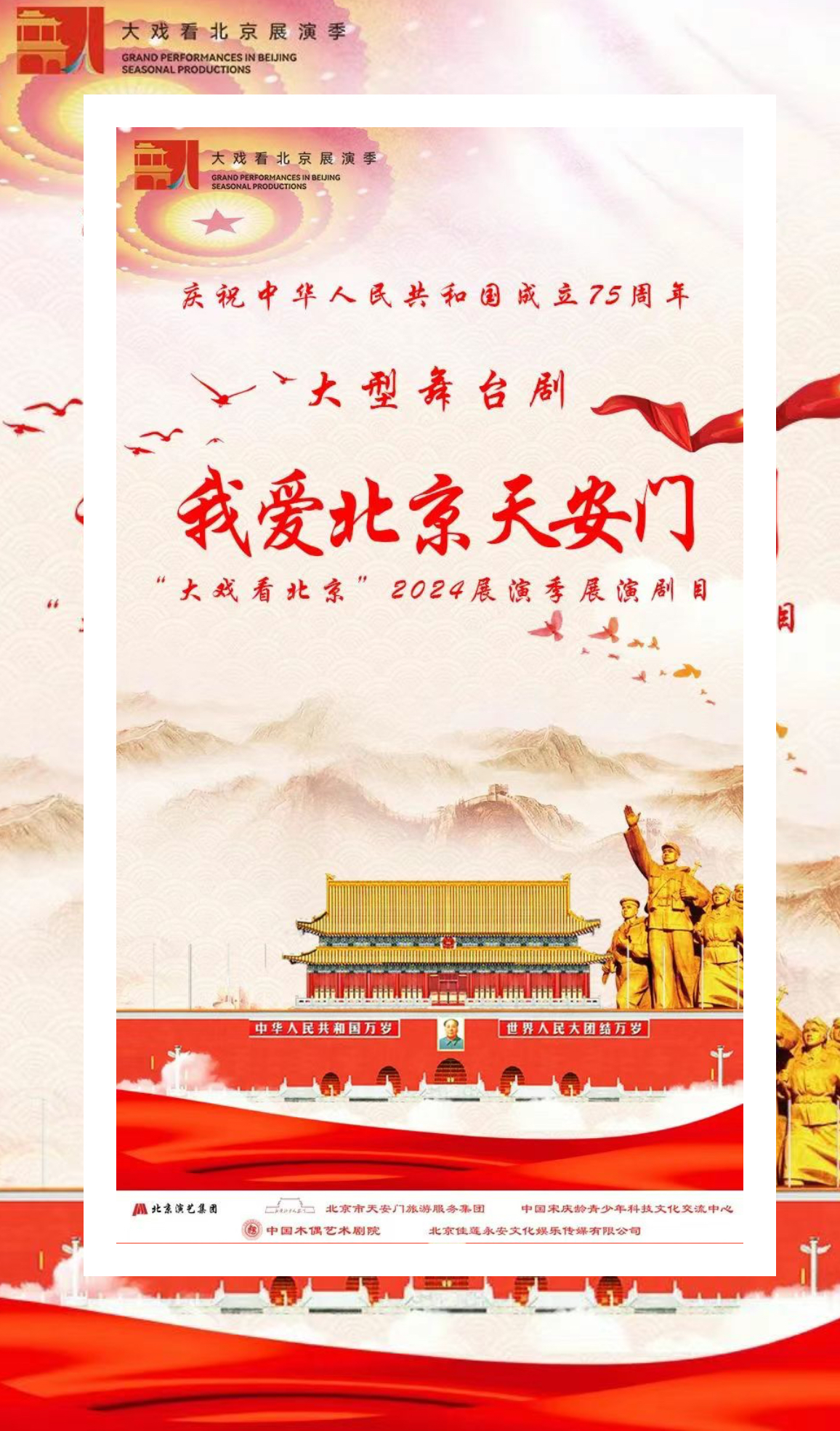 大型舞台剧《我爱北京天安门》将于9月28日在中国木偶剧场卡酷剧场首演。