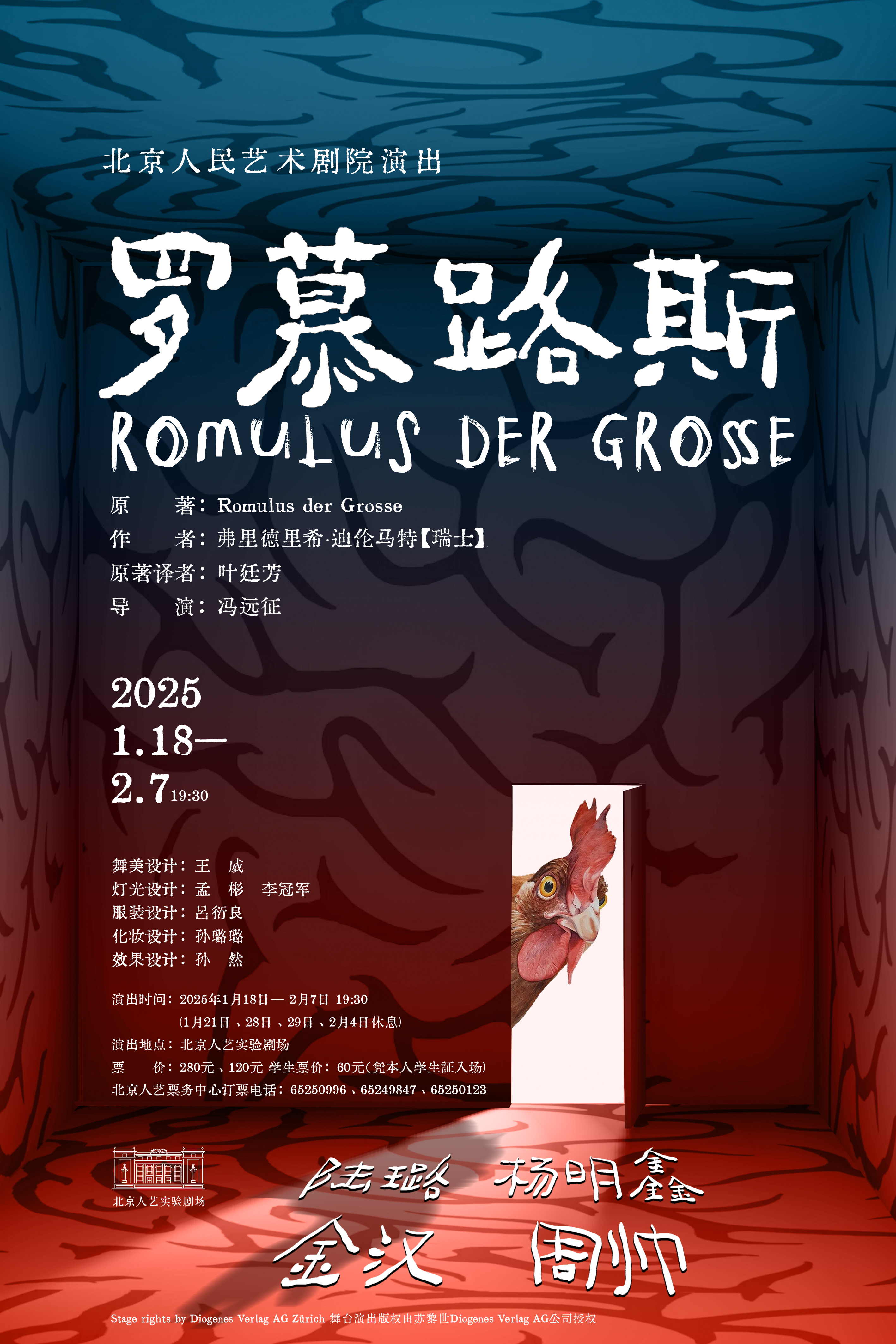 据悉,《罗慕路斯》将于2025年1月18日在北京人艺试验剧场演出,演出将不断至2月7日,与不美不雅众共度新春佳节。
